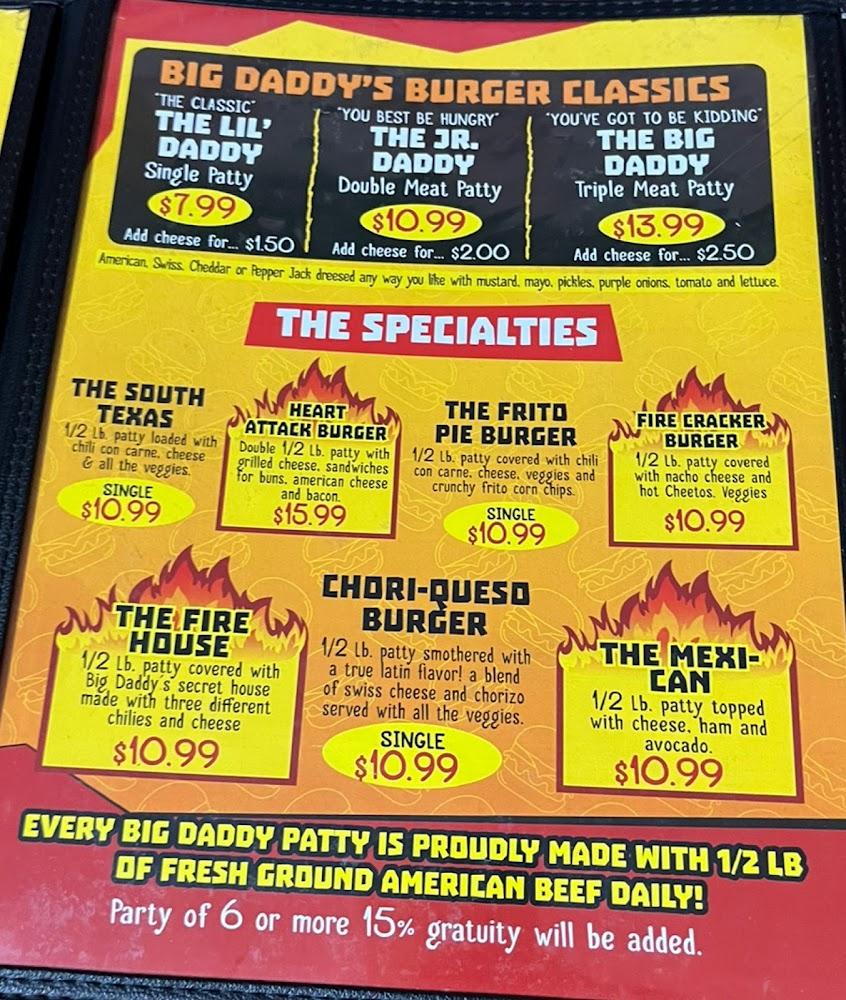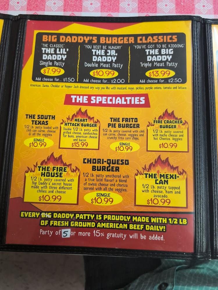 Welcome to Big Daddy's Burgers, where every bite is a taste of passion! Located in Pharr, TX, we pride ourselves on hand-forming our beef patties daily from freshly ground meat—our not-so-secret ingredient for deliciousness. Enjoy a casual dining experience whether you're grabbing a quick lunch, having dinner with friends, or treating yourself to a solo meal. With options for dine-in, takeout, and delivery, plus a welcoming atmosphere and full accessibility, Big Daddy's is perfect for everyone. Don’t forget to check out our kid-friendly menu and tempting desserts! Visit us for a burger experience that feels just like home.
